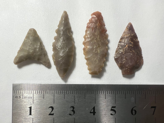4x Stone Age Ancient Neolithic Stone Arrowheads in Display Case