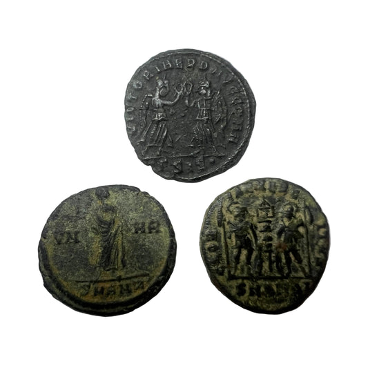 3 x Genuine Ancient Roman Coins In Display Case - Constantinian Dynasty