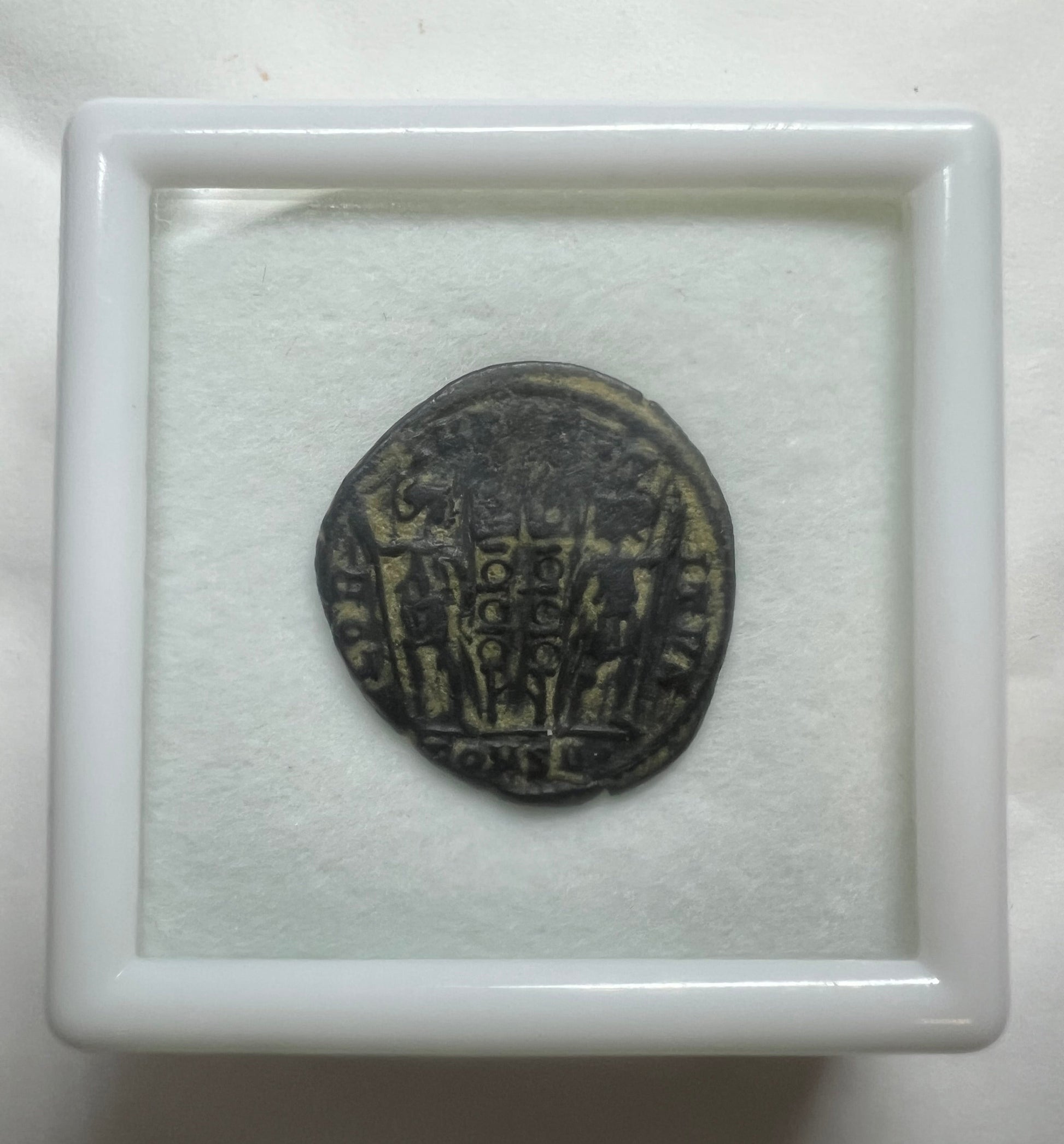 One nicely preserved, slightly restored Roman coin from the Constantinian dynasty. Nice patina with soil matrix, Beautifully presented, great for collection, display or gift.