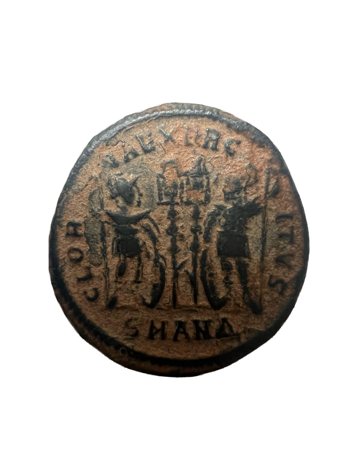 Beautifully preserved TOP QUALITY Roman coin from the Constantinian dynasty in reversible black/white background display case. Case measurement: 8.5 x 6.5 cm.